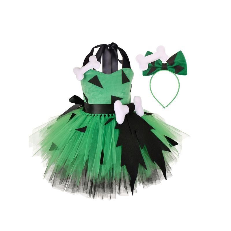 Kids Girls Caveman Costume Cavegirl Tulle Dresswith Headpiece Stone Age Outfit HalloweenCosplay Dress Up Photo Shoot